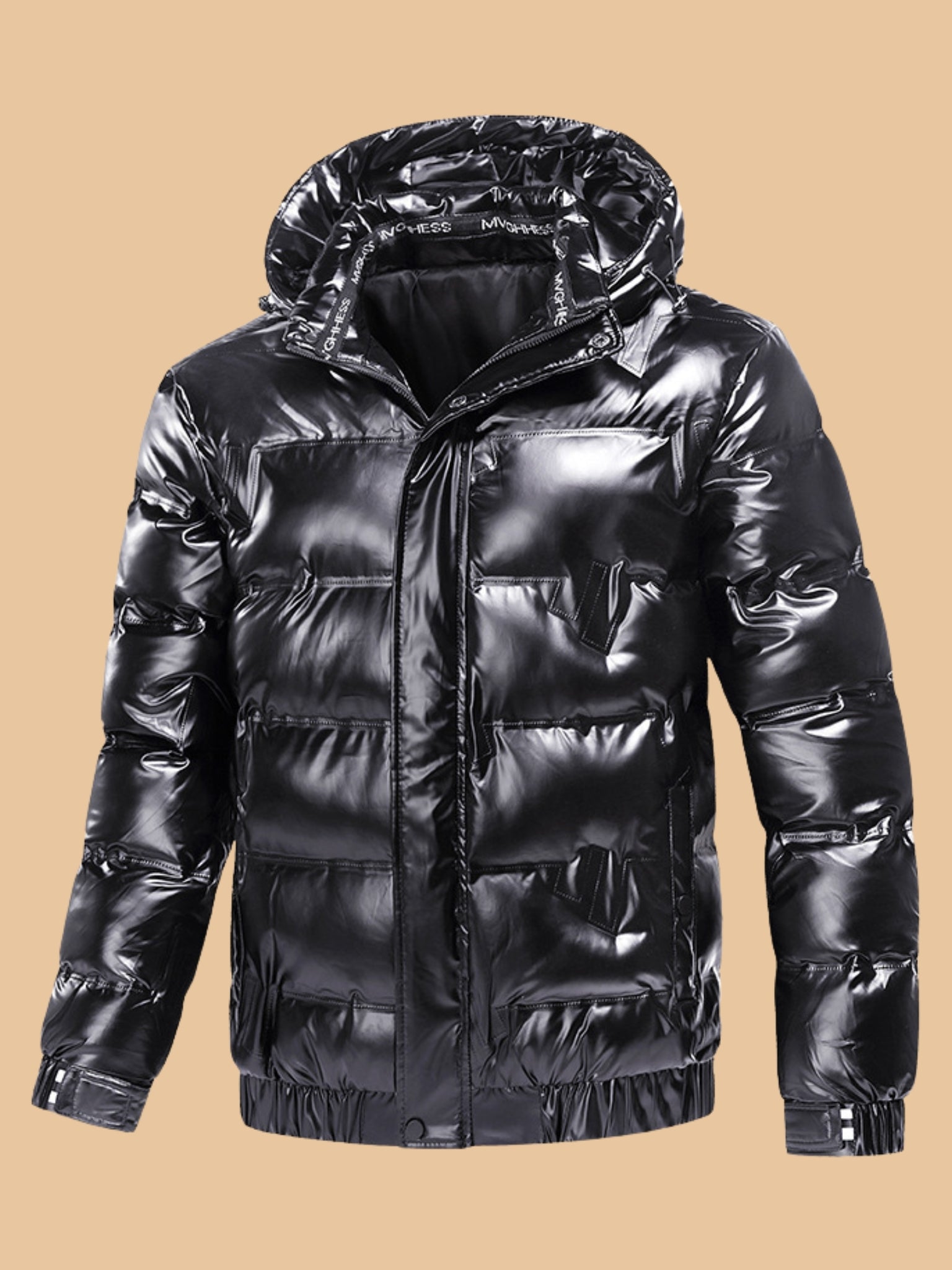 Deze herenjas combineert moderne streetwear met pure functionaliteit. De glanzende afwerking geeft een krachtige uitstraling, terwijl de gewatteerde binnenzijde warmte biedt zonder volume. De capuchon biedt extra bescherming bij wind en lichte regen, zodat je moeiteloos stijlvol blijft, ongeacht het weer.Perfect voor dagelijks gebruik — van werk tot avondwandeling — deze jas brengt evenwicht tussen comfort en karakter.