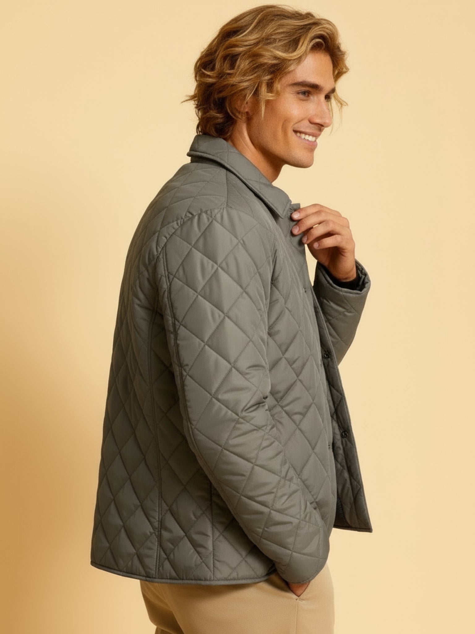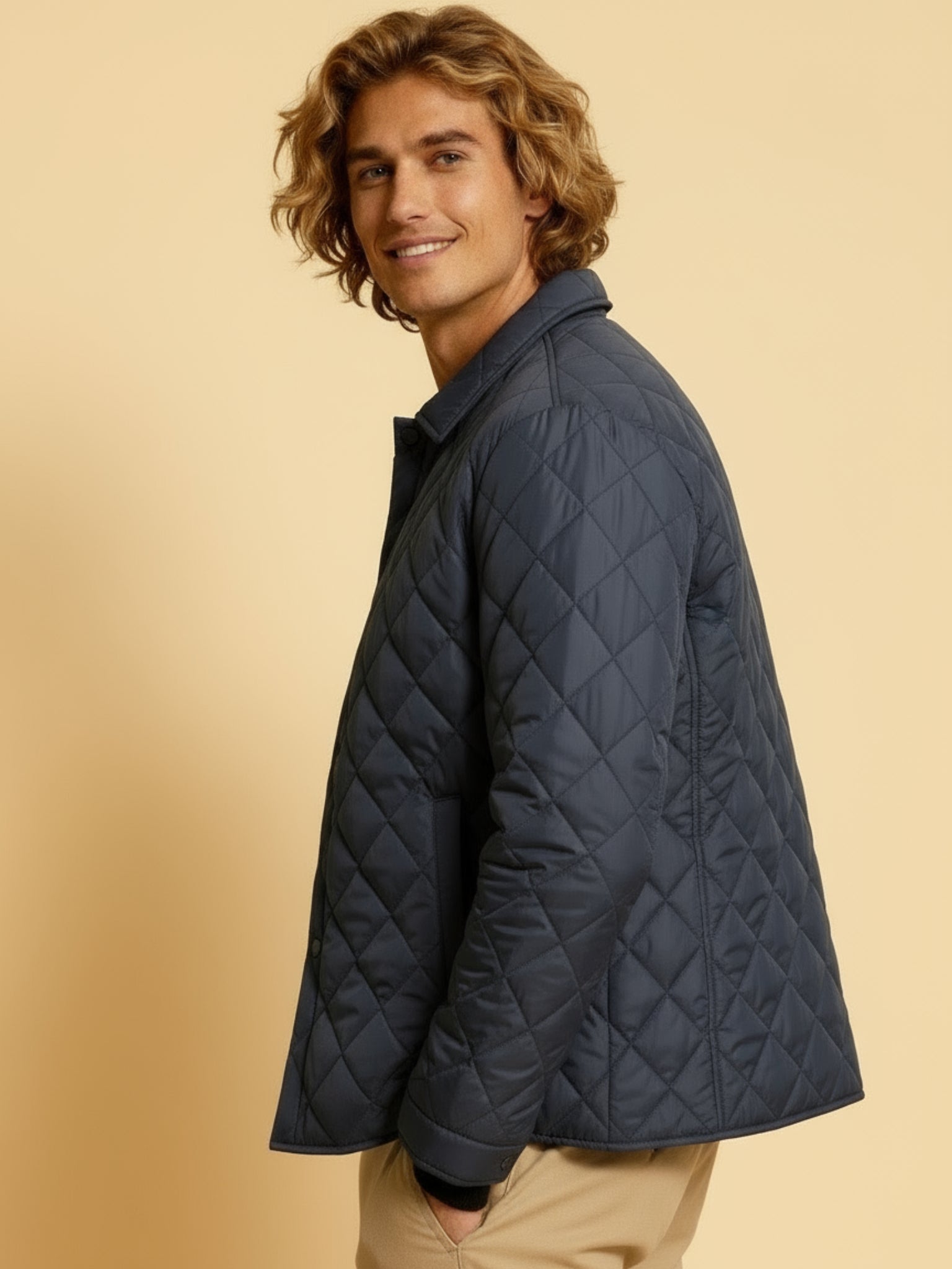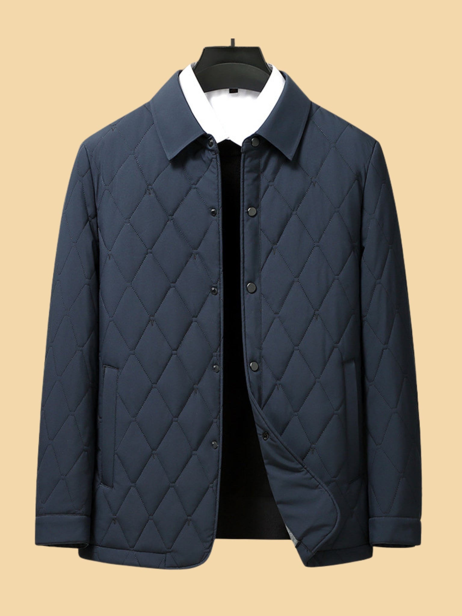 Deze klassieke gewatteerde jas voor heren combineert elegantie met praktische warmte. Het ruitgestikte patroon geeft een verzorgde uitstraling, terwijl de lichte vulling zorgt voor comfort zonder oververhitting. Perfect voor de overgangsseizoenen of milde winterdagen – een jas die moeiteloos past bij jeans, truien of zakelijke outfits.Waarom deze jas de juiste keuze is:
